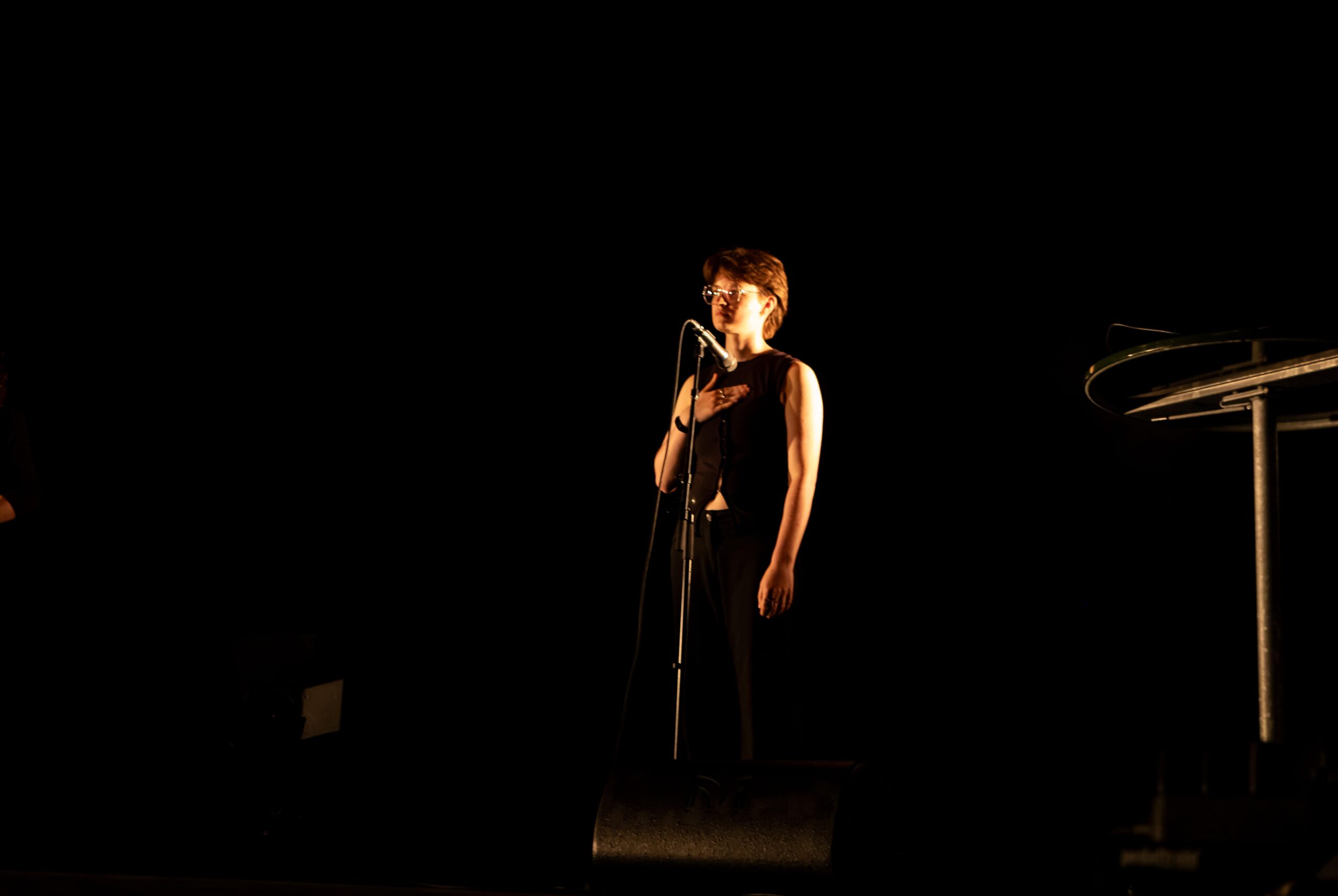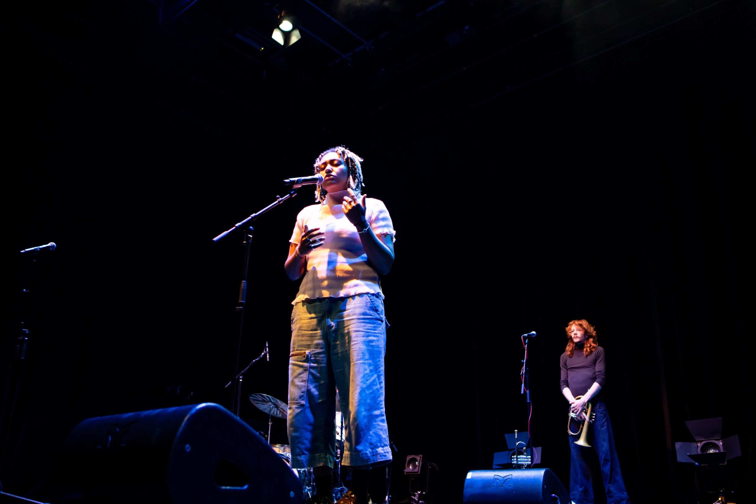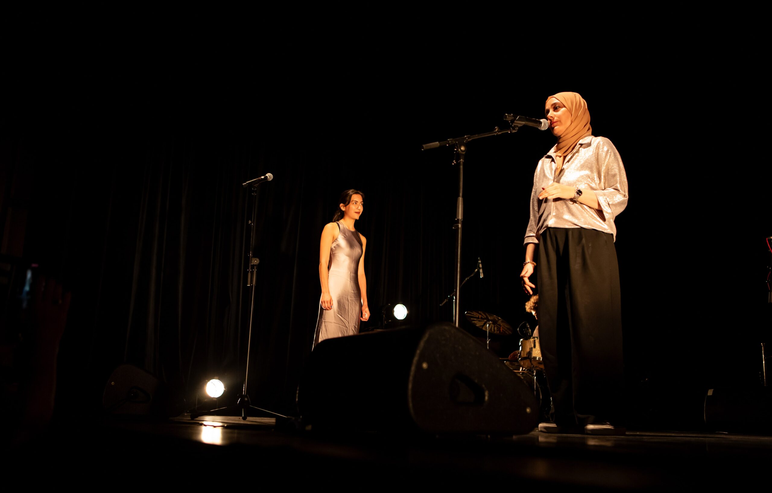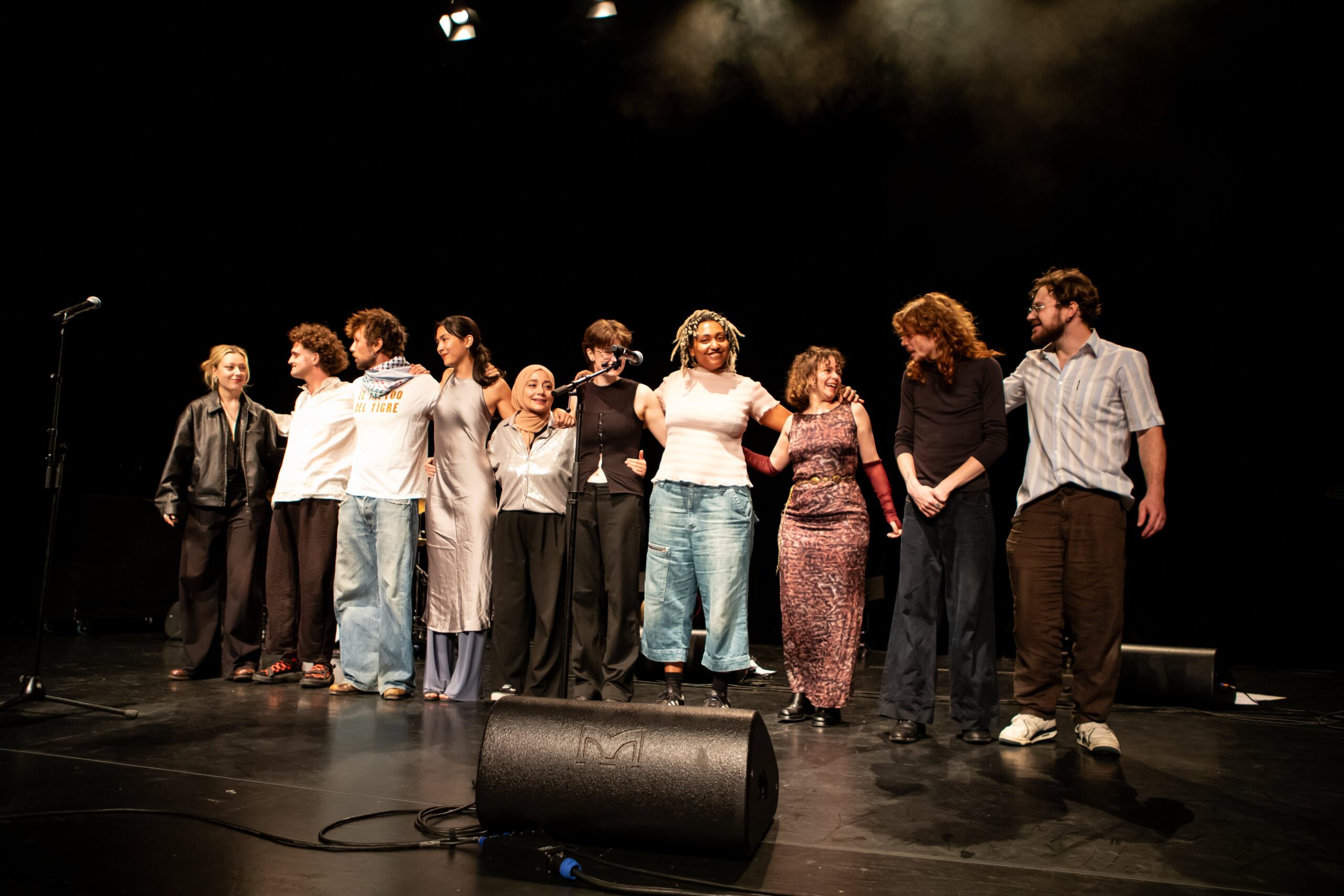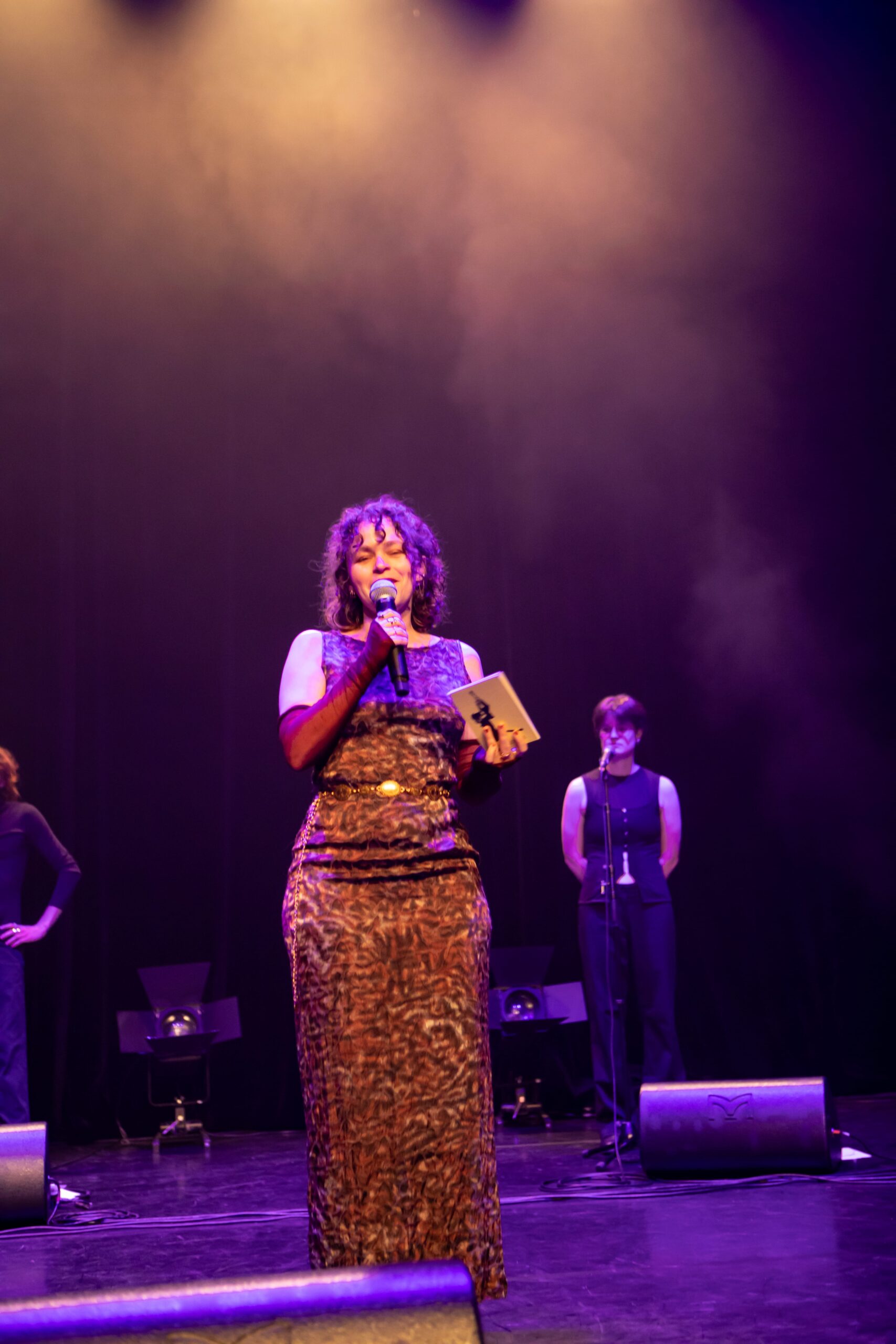 Podiumdichters: Zindzi Tillot, Lisa Koo Gautama, Ravi Rosoux, Elise Bauwens en Sevdâ Sogütlü